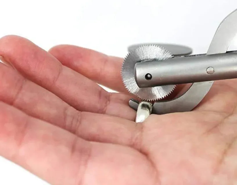 We have a special tool which is a hand-turned circular saw, specifically designed for this purpose, it has a built-in guard to protect your skin.