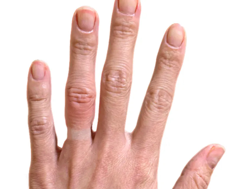 Your finger may be disfigured after wearing a tight ring for a long time. The place on the finger where it was worn is unusually withered and thin, but the knuckle above it is swollen and too large. We recommend waiting at least a month for the tissue to settle before having a new size measured and the ring re-sized.